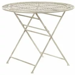 Voeg een vleugje Provençaalse stijl toe aan je balkon of tuin met deze elegante, ronde tafel. De balkontafel is gemaakt van gepoedercoat ijzer en heeft een verweerd effect en een opengewerkt ontwerp met bloemenornamenten. Combineer de bistrotafel met bijpassende stoelen om de perfecte plek te creëren voor ontbijt of lunch in elke buitenomgeving. De tafel is inklapbaar, dus je kunt hem ook buiten het seizoen gemakkelijk opbergen.