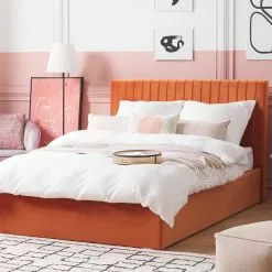 Echt elegant, dit bed zal elke slaapkamer zeker omtoveren in een luxe mastersuite. Met het gecapitonneerde, gevleugelde hoofdeinde is het een perfect statement voor een glamoureus of traditioneel interieur. De bedcontouren zijn versierd met metalen spijkerkoppen. De meegeleverde lattenbodem biedt een stabiele matrasondersteuning en zorgt voor een goede luchtstroom.
