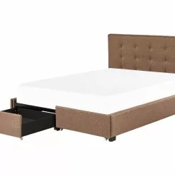 Dit uitstekende bed heeft een elegant design en ultiem comfort. Het dik gecapitonneerde hoofdeinde is voorzien van decoratieve knopen en biedt tegelijkertijd ultieme luxe. De 100% linnen polyester bekleding in een chique universele kleurtint is onderhoudsvriendelijk. Het frame, gemaakt van gefineerd multiplex, heeft twee ruime laden op bevers, die voldoende ruimte bieden voor al het beddengoed en de lakens.
