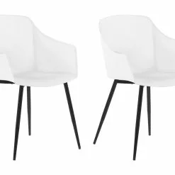 Tijdloos design met een hoog zitcomfort. Deze set van 2 stoelen heeft prettige zittingen van robuust, wit kunststof. De slanke poten van gepoedercoat metaal zorgen voor een stabiele stand. De praktische en comfortabele stoelen passen in elke woonruimte. Veelzijdig en uitstekend te combineren met vele inrichtingsstijlen.