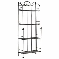 Deze plantenstandaard zal zowel binnenshuis als buiten een opvallende aanwinst zijn.De 4 planken bieden voldoende ruimte voor uw planten of decoratieve accessoires. De nostalgische decoratieve stijl geeft elke tuin of terras een klassieke en charmante uitstraling.
