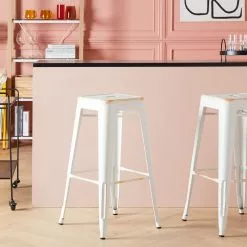 Beliani Barkruk Set Van 2 Metaal Wit CABRILLO L